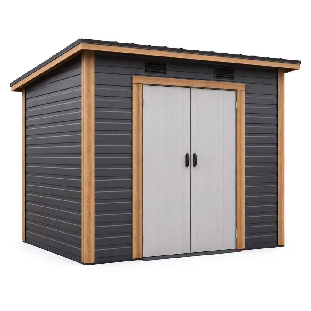 Materiale: Pareti in plastica rinforzata con struttura in metallo e rifiniture effetto legno.