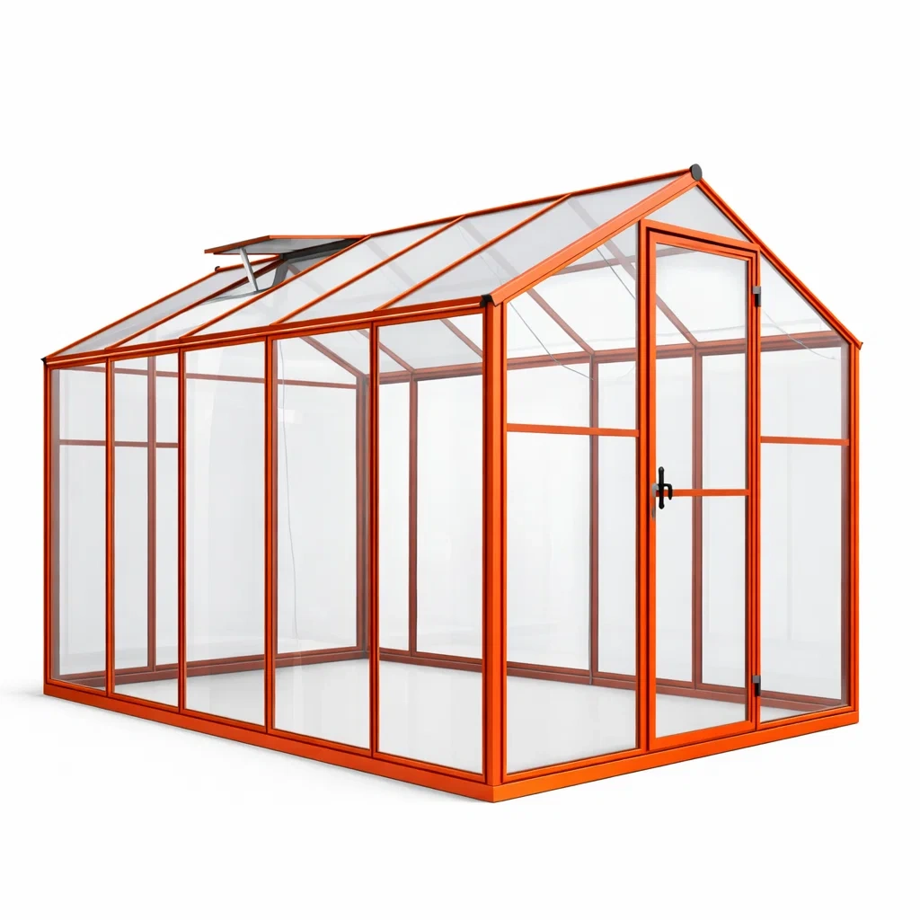 Questa serra da giardino è costruita con un telaio in alluminio e pannelli in policarbonato trasparente. Misura 251 cm di lunghezza, 191 cm di larghezza e 201 cm di altezza. La serra ha una porta singola e finestre per la ventilazione regolabile. È resistente alle intemperie e include una serratura. Peso complessivo di 70 kg.